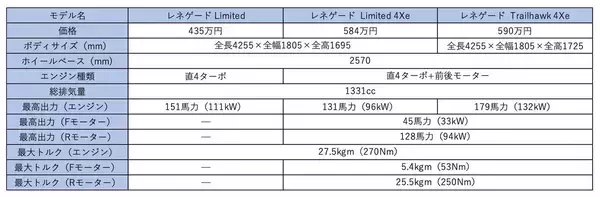 ジープ・レネゲードのスペック表