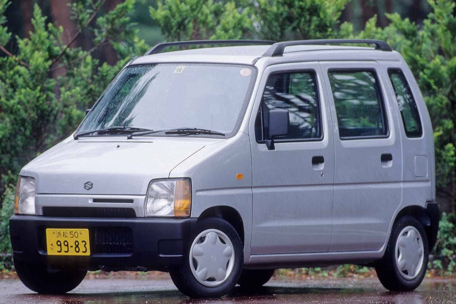 1台目は、バブルが弾けた1993年に彗星のごとく現れた、軽自動車のスーパーハイトワゴンブームの火付け役となった、初代ワゴンR。当時はまだ、全高が高い軽自動車というのは商用バンのようなタイプしかなく、しっかりボンネットがあるデザインで全高が高いスタイルは新鮮だったものです。