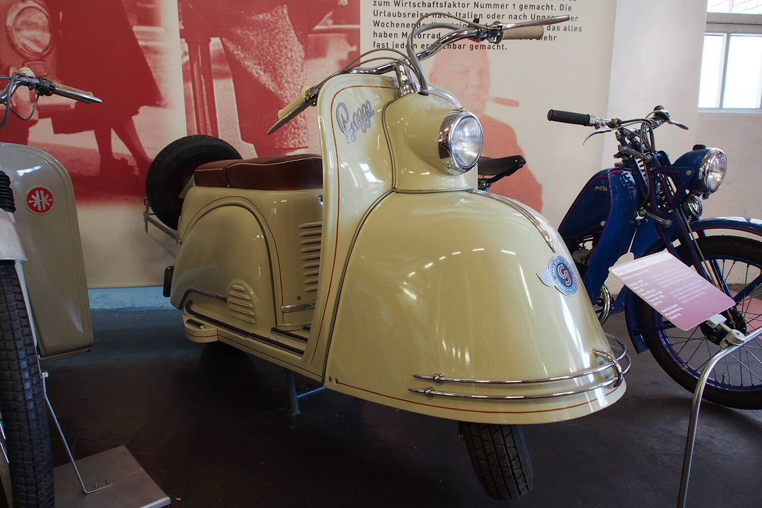 ゴッゴモビルの生みの親は、すでにドイツ国内で自動車生産に実績のあったグラース社。クラシックスクーターのマニアなら、1951年製のゴッゴローラーという流線形のマシンを目にしたことがあるかもしれません。ゴッゴの名は、その後4輪のマイクロカーにも引き継がれたわけですが、じつはグラース社の創設者、ハンス・グラースの孫娘の名前というなんともほっこりするエピソードです。