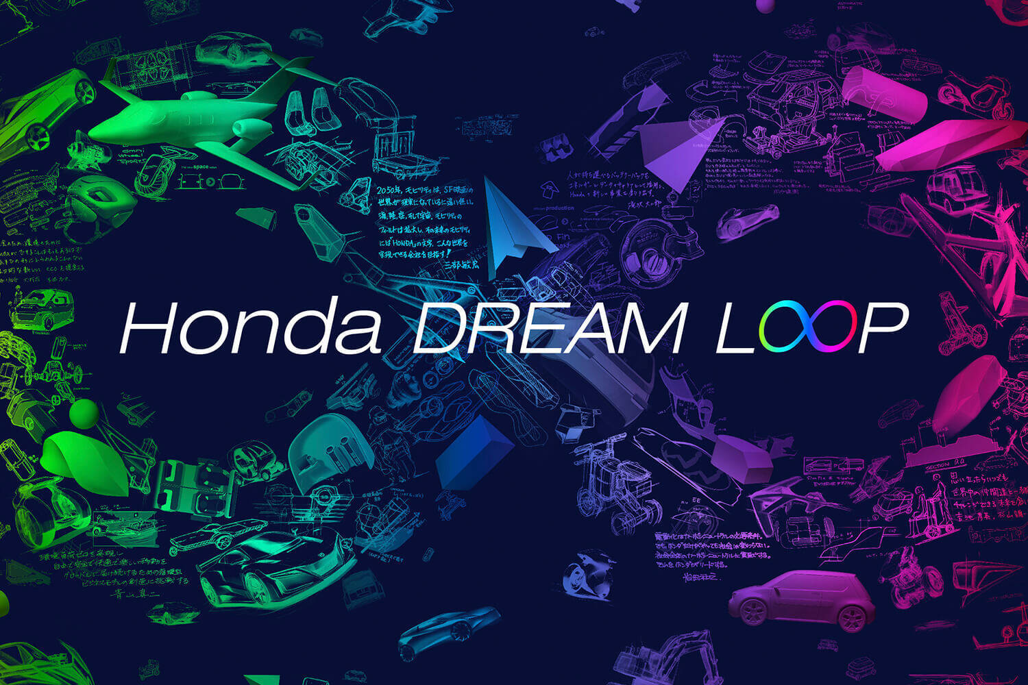 テーマは、ホンダの夢をかたちにしたモビリティを起点に、未来に向けてユーザーの夢が多様性に満ちて広がっていくことを表現する「Honda DREAM LOOP」となっている。
