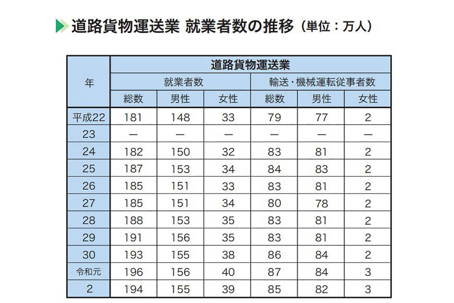「男の世界」と見られがちなトラック業界だが、近年、この業界にチャレンジする女性ドライバーが増えている。全日本トラック協会の統計によると、令和元年を境におよそ2万人から3万人に増加。