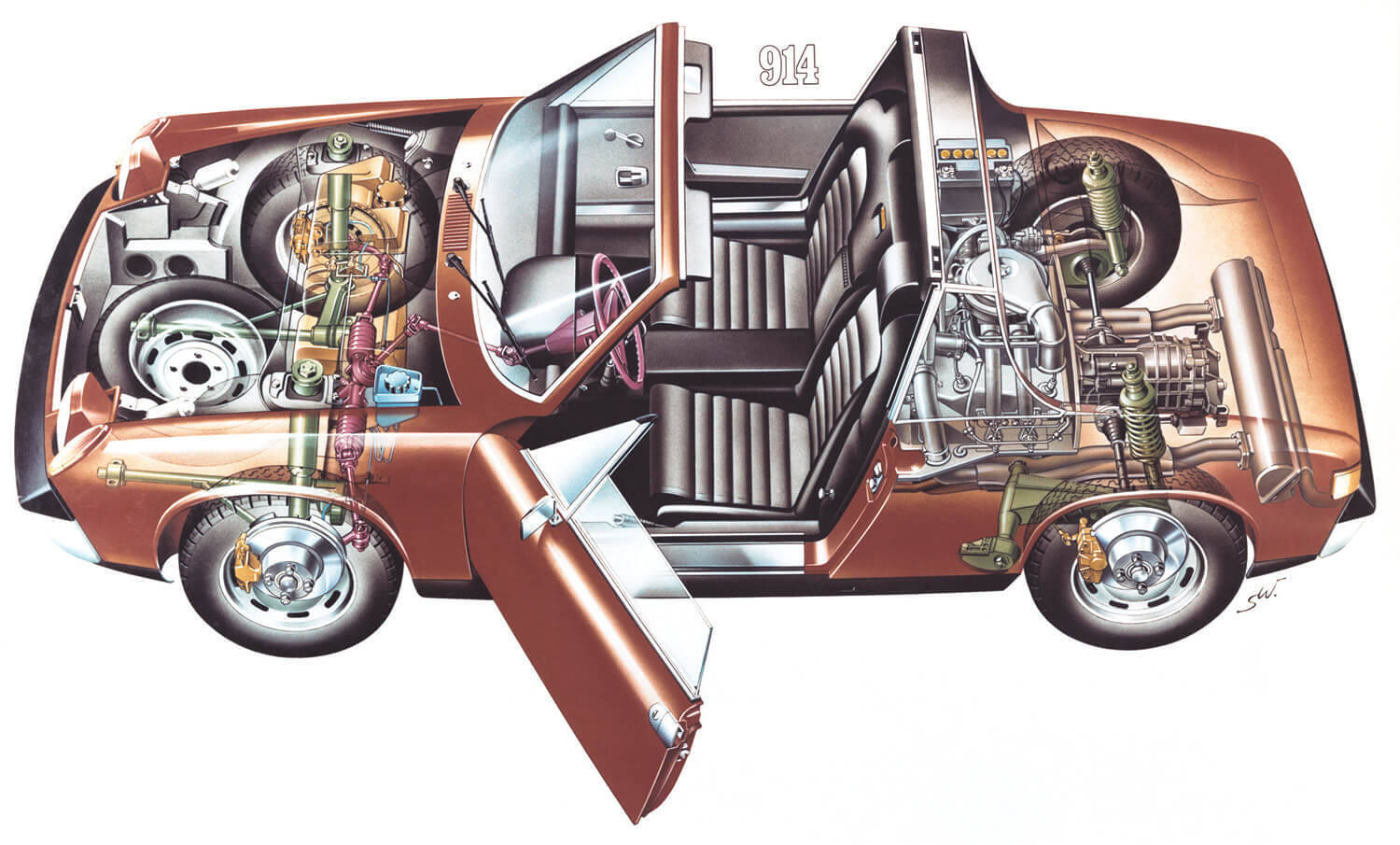 ポルシェにとってミッドシップという基本設計は、1952年に誕生した550スパイダー以来、長い経験を持つものであり、VWとの間で話し合われたコンパクトでリーズナブルなミッドシップ車の計画は、じつに魅力的なものであった。結果、その新型車の設計はポルシェに委ねられ、パワーユニットやボディ製作はVWが、そしてじっさいの販売はポルシェとVWが50:50で出資した新会社、VW-ポルシェ社によって行われることが決定したのである。