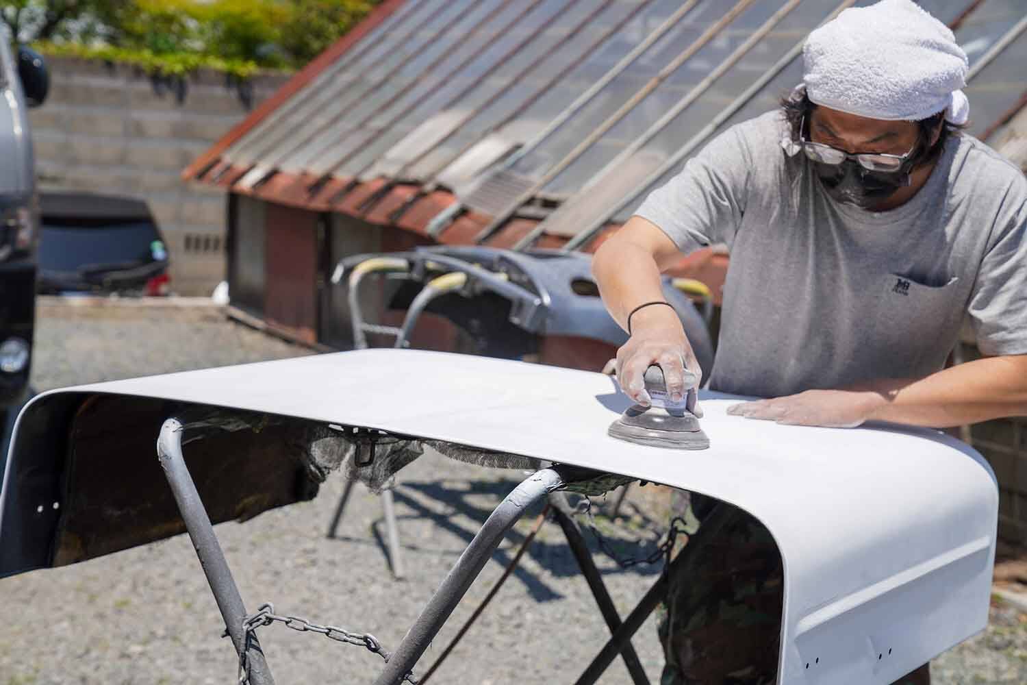 思い切って板金と再塗装(オールペイント)という選択をすることになるのだが、ここで注意しなければならないのは、クルマの塗料は一度それを剥離すると、ベースになっているスチールの耐久性は確実に落ちること。実際の仕上がりも現代の新車のようにピカピカになってしまうから、旧車の雰囲気はどうしてもそれを正確に再現するのは難しいというのが現実ともいえる。
