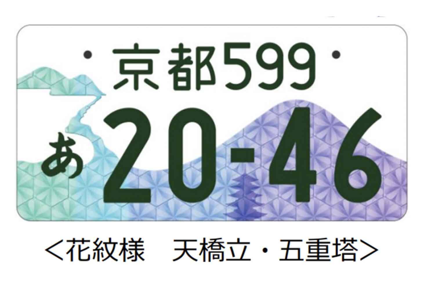 すべての図柄のなかでもっともセンスの良さを感じさせるのは、京都府の「京都」ナンバーではないでしょうか。プレートの面積をめいっぱい埋めるのではなく、白い余白を残しながらも、花紋様で天橋立と五重塔をデザインする、奥ゆかしさ。グラデーションとなっている色合いも、どこか着物をイメージさせるような雅な雰囲気で、クルマを上品に見せてくれそうです。