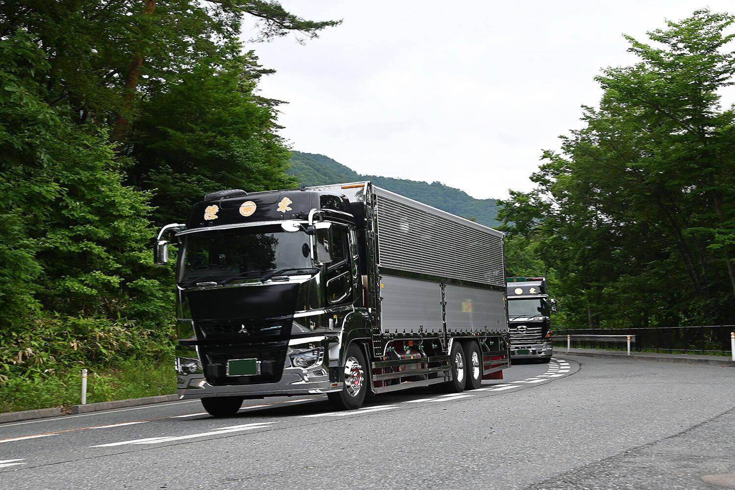 社歴の長い陸東運輸は、昔々はいわゆるデコトラ仕様に飾ったトラックでデコトラマニアも唸る名車揃いだった。しかし現在は、派手な飾りは控えつつも、屈強なつくりボディに自社工場製のサイドバンパーやリヤバンパーを装備した、時代に則したスタイリッシュな車両へと変貌を遂げている。東北名産である米という穀物を全国各地へと運ぶのが同社の主な業務である。