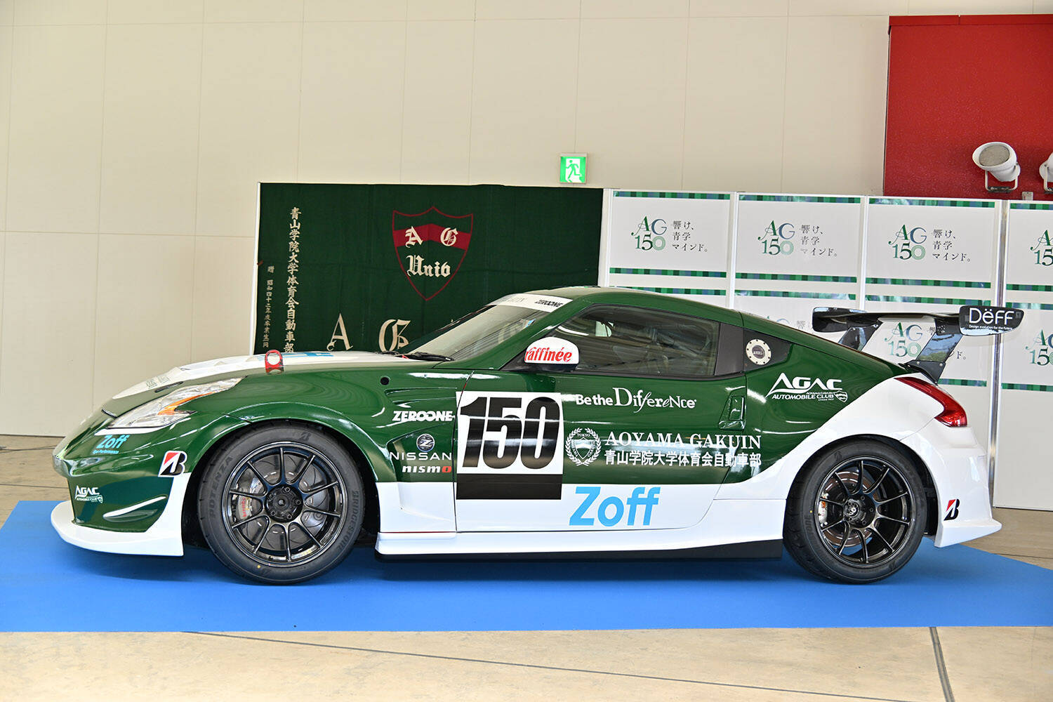 気になるマシンはZ34をベースにした「青山学院自動車部 Zoff Z」で、青学カラーに彩られたマシンが会場に展示されていた。