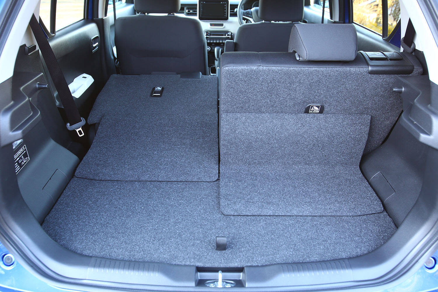 荷室も荷室長が短く、リヤゲートを寝かせたから容量も小さい。しかしリヤゲートのヒンジが前寄りに装着されるため、開閉時に後方へ張り出しにくく、狭い場所でも荷物を出し入れしやすい。