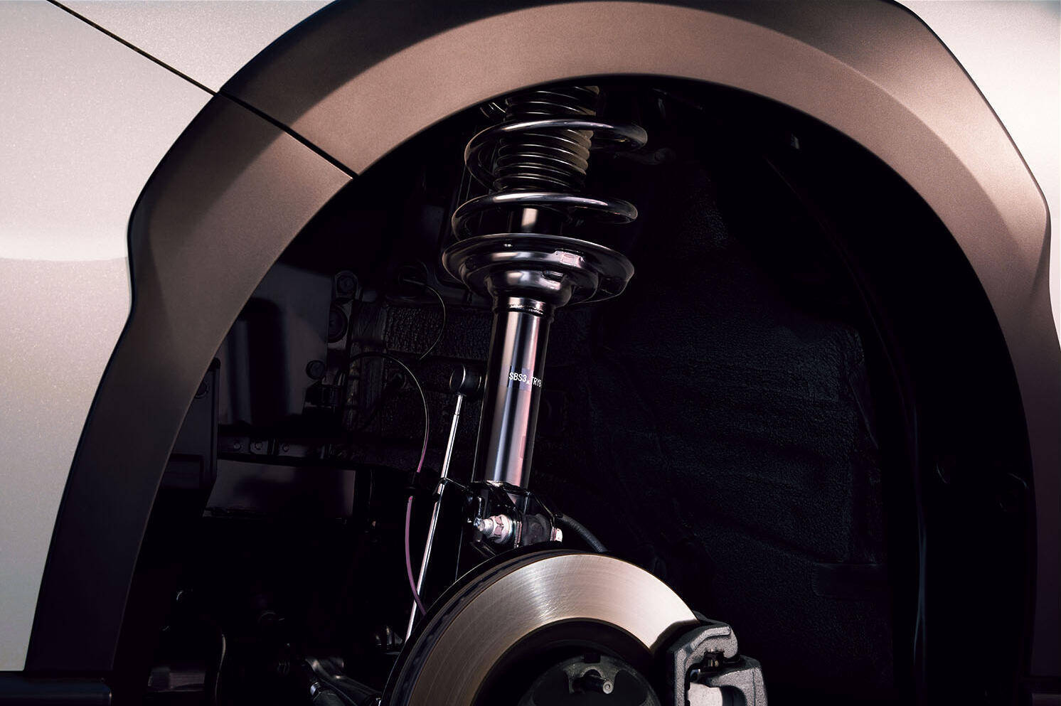 足まわりには、STIがチューニングした専用ダンパーを装備。とくにフロントダンパーについては日立Astemo製の周波数応答型ダンパーとなる。フラットで滑らかな乗り心地と、思いのままに操れる走行安定性を両立することで、上質ながらもスポーティな走行性能を実現している。