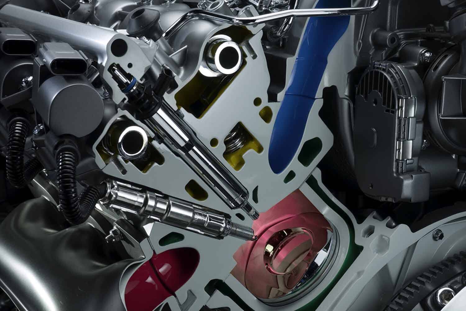 要するに、安定した燃焼状態が作りにくいということだが、コモンレール方式の高圧噴射により、燃料の微粒子化が可能となり、また電子制御式(ソレノイド式インジェクター/ピエゾ素子式インジェクター)を採用することで1回の圧縮行程間に複数回(5~9回)に分けた噴射が可能となった。この結果、機械燃料噴射に比べて燃焼効率が格段に引き上げられ、高出力化、低公害化が可能となったものだ。