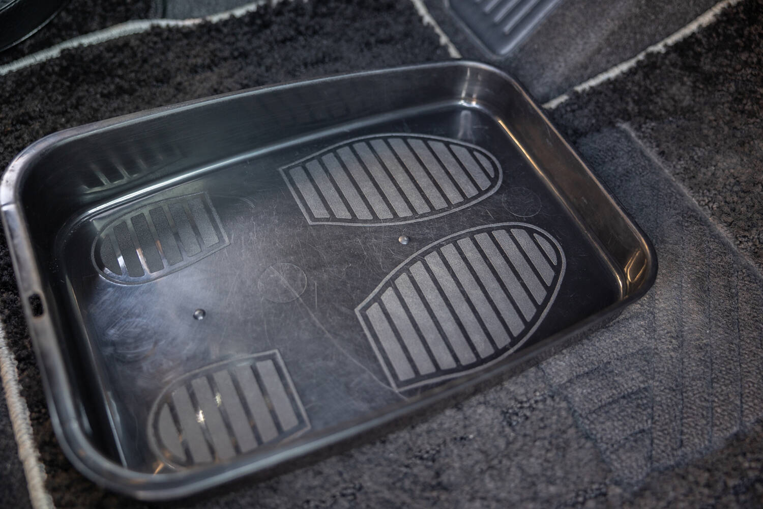 靴は専用のトレーに置いて、裸足または靴下でアクセル&ブレーキ、クラッチを操作し、クルマから降りるときにはその都度、靴を履いて外に出る……。まるで家の玄関のようです。