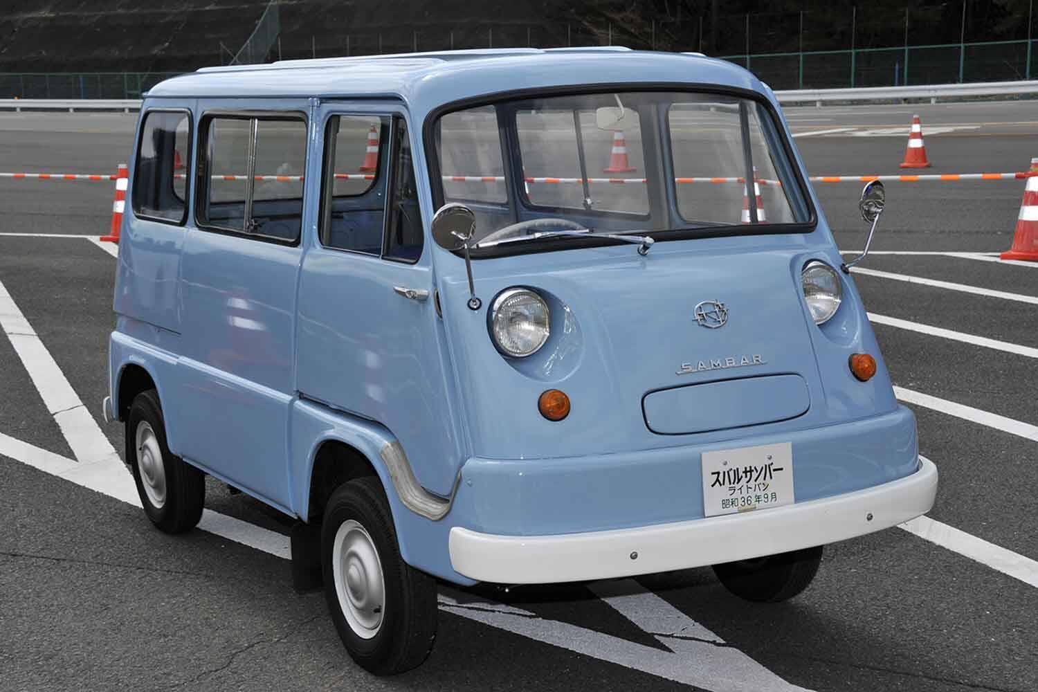サンバーは1961年に初代モデルが登場。パワートレインやサスペンションレイアウトなどはスバル360のものを流用したことで、リヤエンジン・リヤドライブ方式と四輪独立サスペンションをもっており、この基本は最終型まで変わることなく採用され続けたのも人気の秘訣といえるだろう。