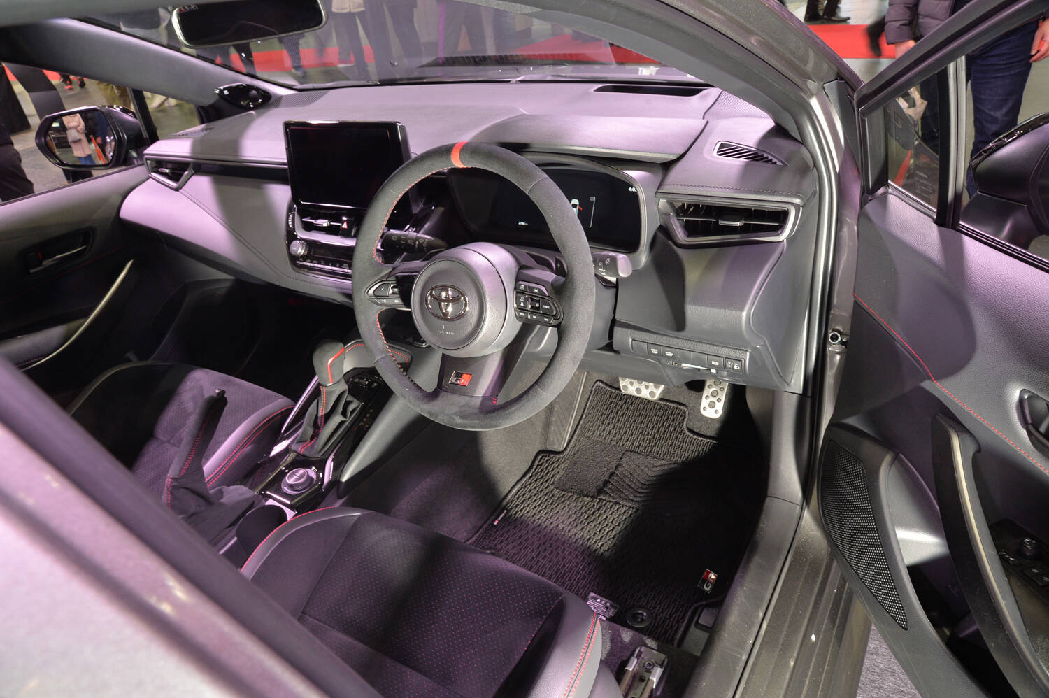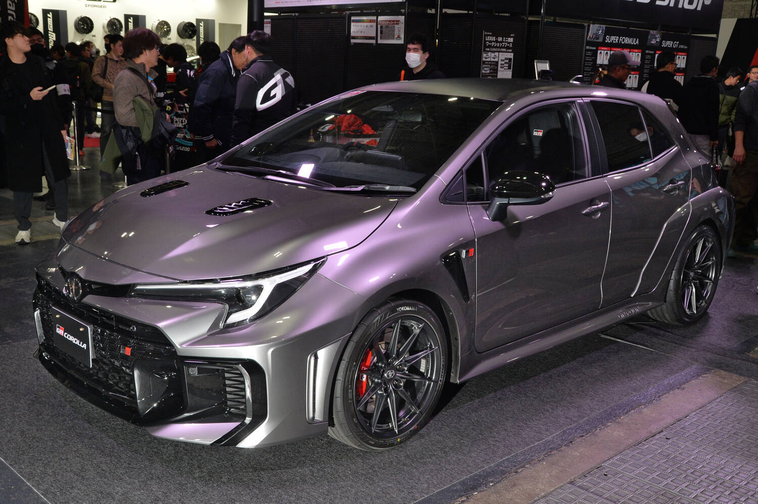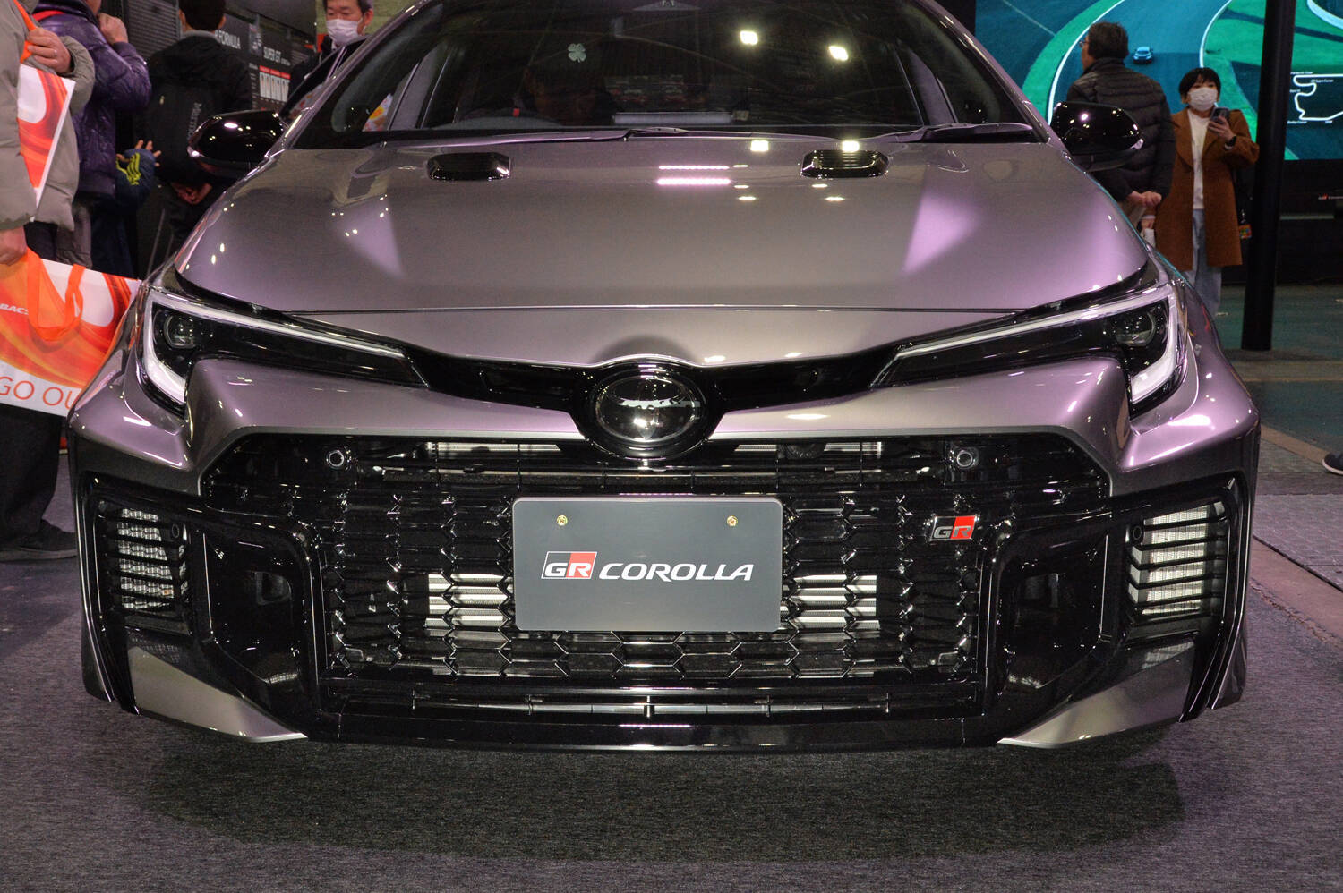 2月の頭に日本への投入が発表されたばかりというタイミングで、日本で初めて実車の展示が行われたGRカローラ進化版は、会場まもなく大勢の人に囲まれていました。