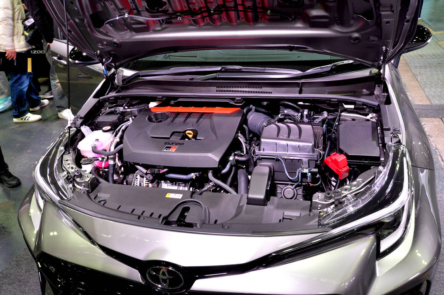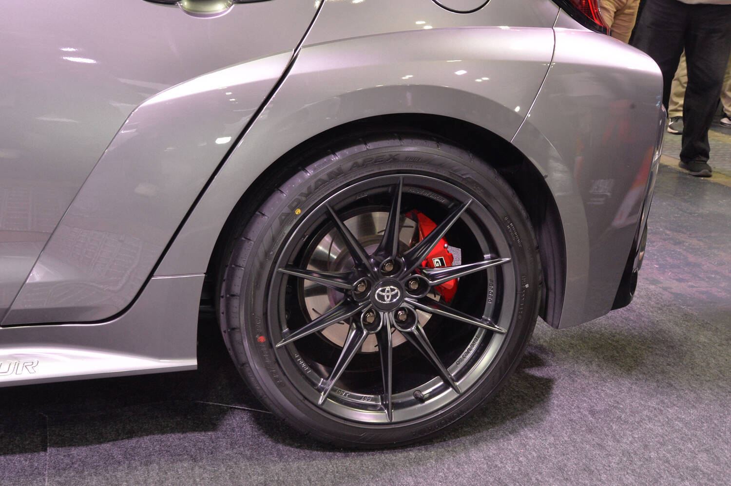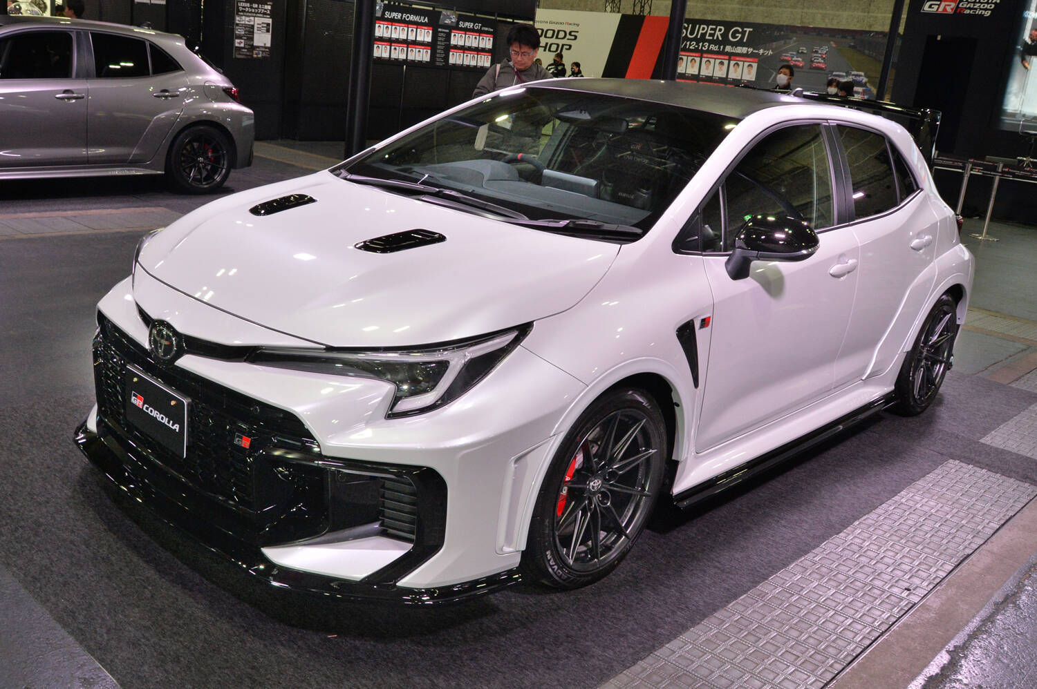 2月の頭に日本への投入が発表されたばかりというタイミングで、日本で初めて実車の展示が行われたGRカローラ進化版は、会場まもなく大勢の人に囲まれていました。