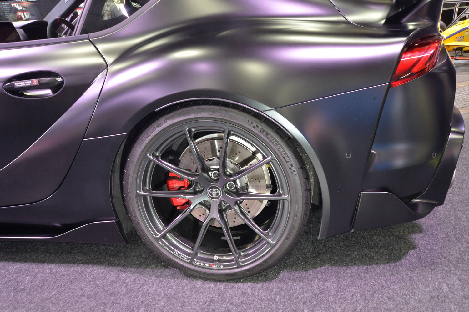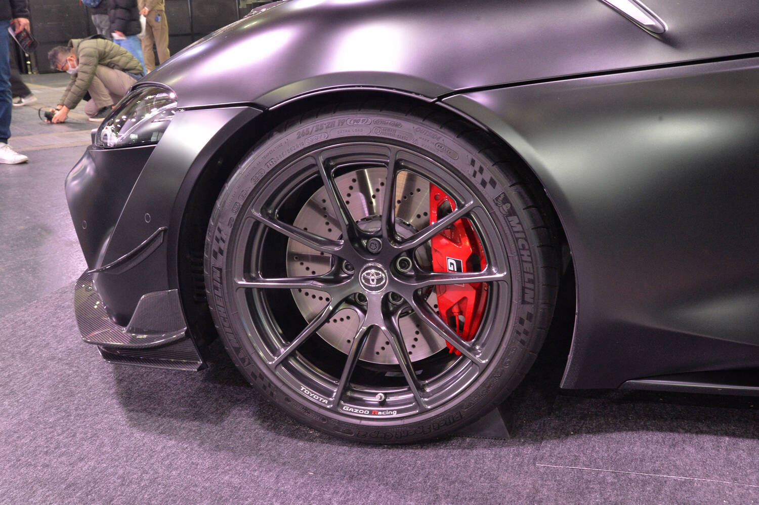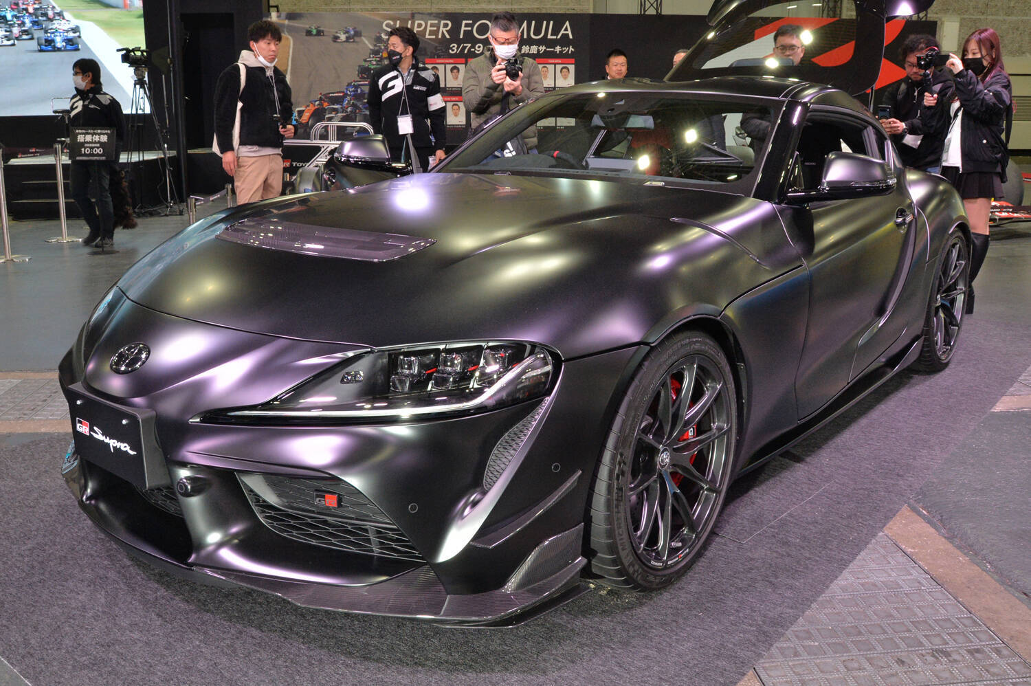 TGRブースの中央付近に展示されていたつや消しブラックのスープラにも、来場者の熱い視線が注がれていました。