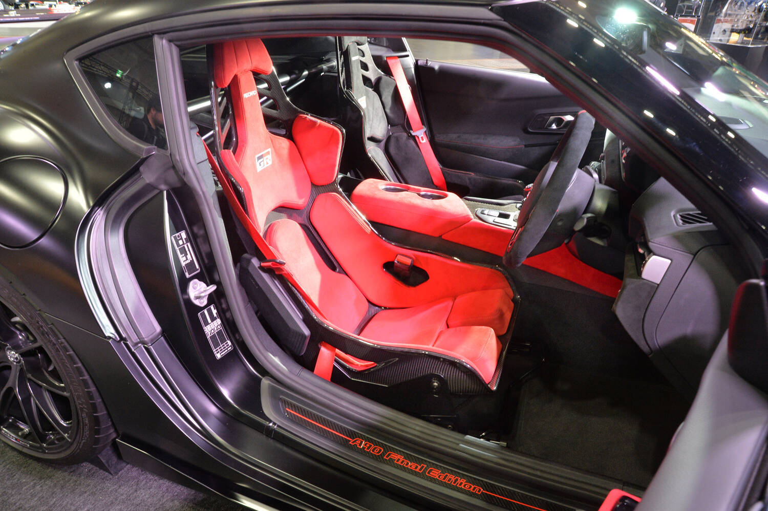 「Supra A90 Final Edition」と名付けられたそのGRスープラは、ボンネットに追加されたダクトやリヤのスワンネックウイングの装着など、一見してタダモノではない雰囲気を放っていました。