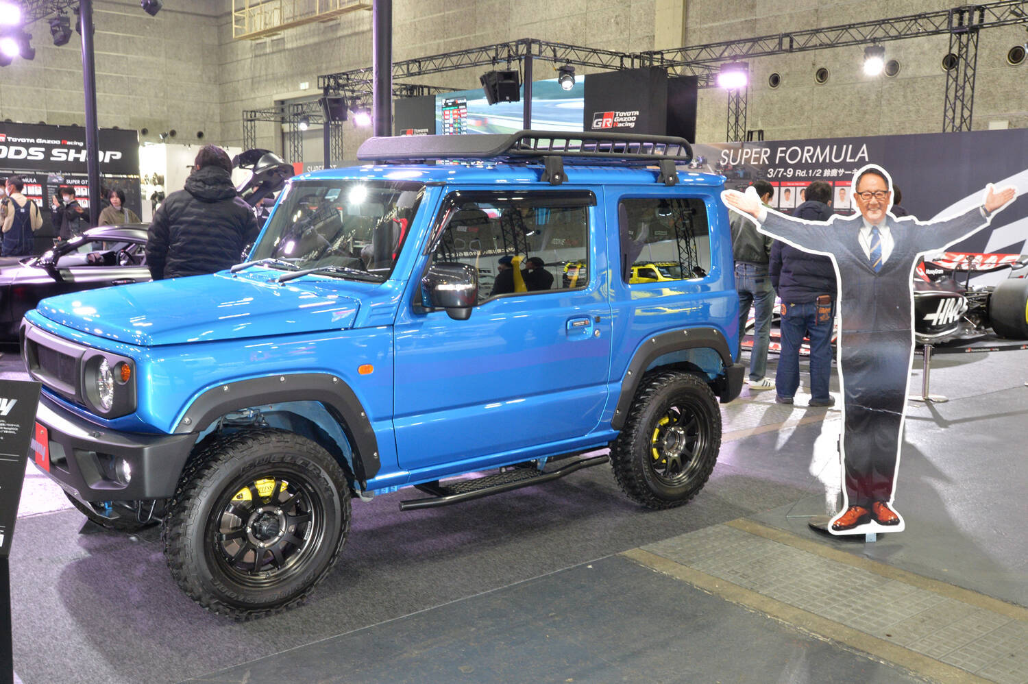TGRブースの端には意外すぎる車両が展示されていたので、それも紹介しておきましょう。その車両は「スズキ・ジムニー」です。それを見つけたときには見間違いではないと、少し我が目を疑いました。