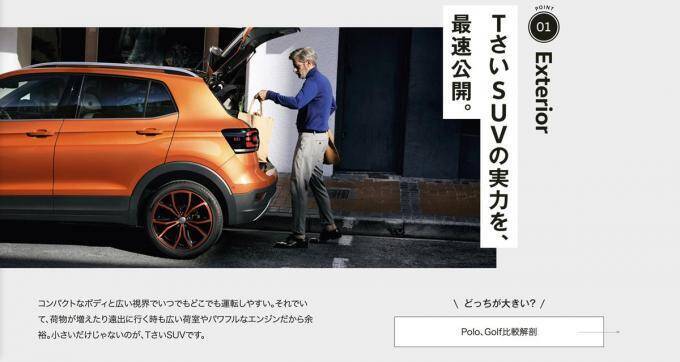 ティザーサイトでは「T-Cross最速攻略」と称して、日本に導入予定のT-Crossの特徴を視覚的にわかりやすく解説している。