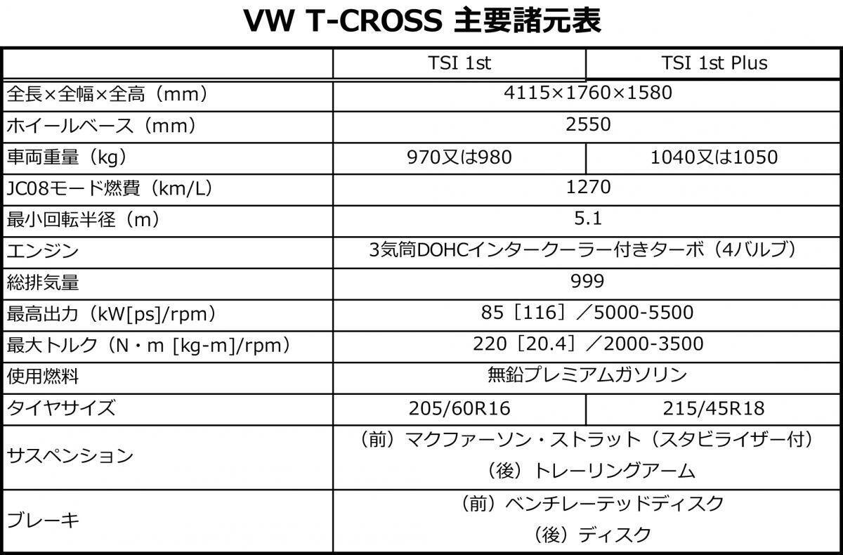 フォルクスワーゲングループジャパンは2019年11月27日、新型コンパクトSUVのT-CROSSを日本で発表。導入記念特別仕様車「T-CROSS TSI 1st」、「T-CROSS TSI 1st Plus」の受注を開始した。