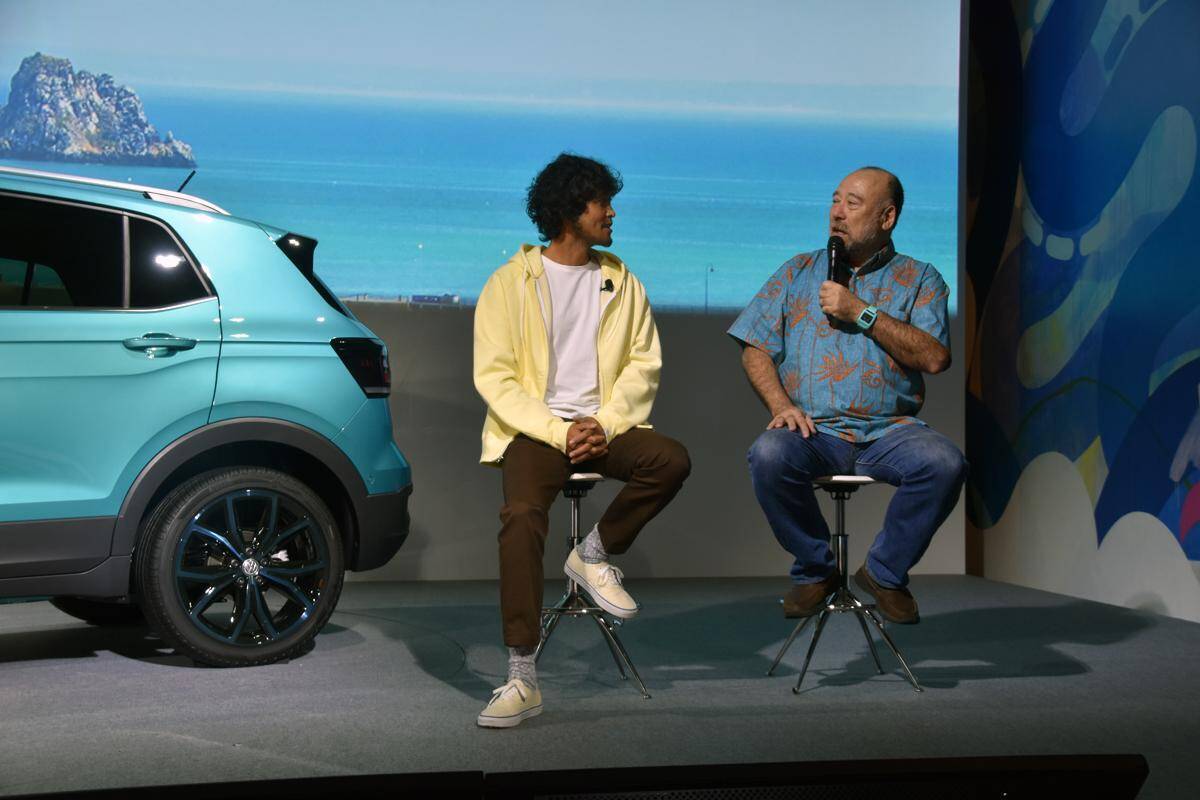 発表会当日はモデルの三浦理志さんと東京FM、インターFMの番組のラジオパーソナリティなどを務めるMCのジョージ・カックルさんも会場に駆けつけた。二人の共通点はサーフィンをこよなく愛することで、「サーフィンはサーフボード、ウェットスーツ、ブーツ、バケツ、シャワーのための水、バレルなど意外と多くの荷物が必要」、また「(二人がよくサーフィンをするという)湘南はメインの道は広いが少し入ると狭くて大きいクルマはすれ違えない」「荷物が積めてコンパクトなこのクルマはベストだ」などと語り合っていた。