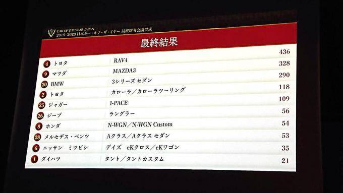 2019年12月6日、2019-2020日本カー・オブ・ザ・イヤーの最終選考会が行われ、トヨタRAV4がその栄誉に輝いた。