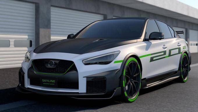 プロパイロット2.0を搭載して注目を集めたスカイラインは、ふたつのコンセプトモデルを展示する。スカイライン400Rスプリントコンセプトは、高性能なV6ツインターボを搭載した400Rをベースに、スポーティさを際立たせる前後バンパーとリヤスポイラーを装着し、20インチの鍛造ホイールを装着。ホワイト・シルバー&マットブラックをベースに、フローセントグリーンのアクセントカラーを配している。走りの性能を際立たせた、400Rの新しい提案となっている。
