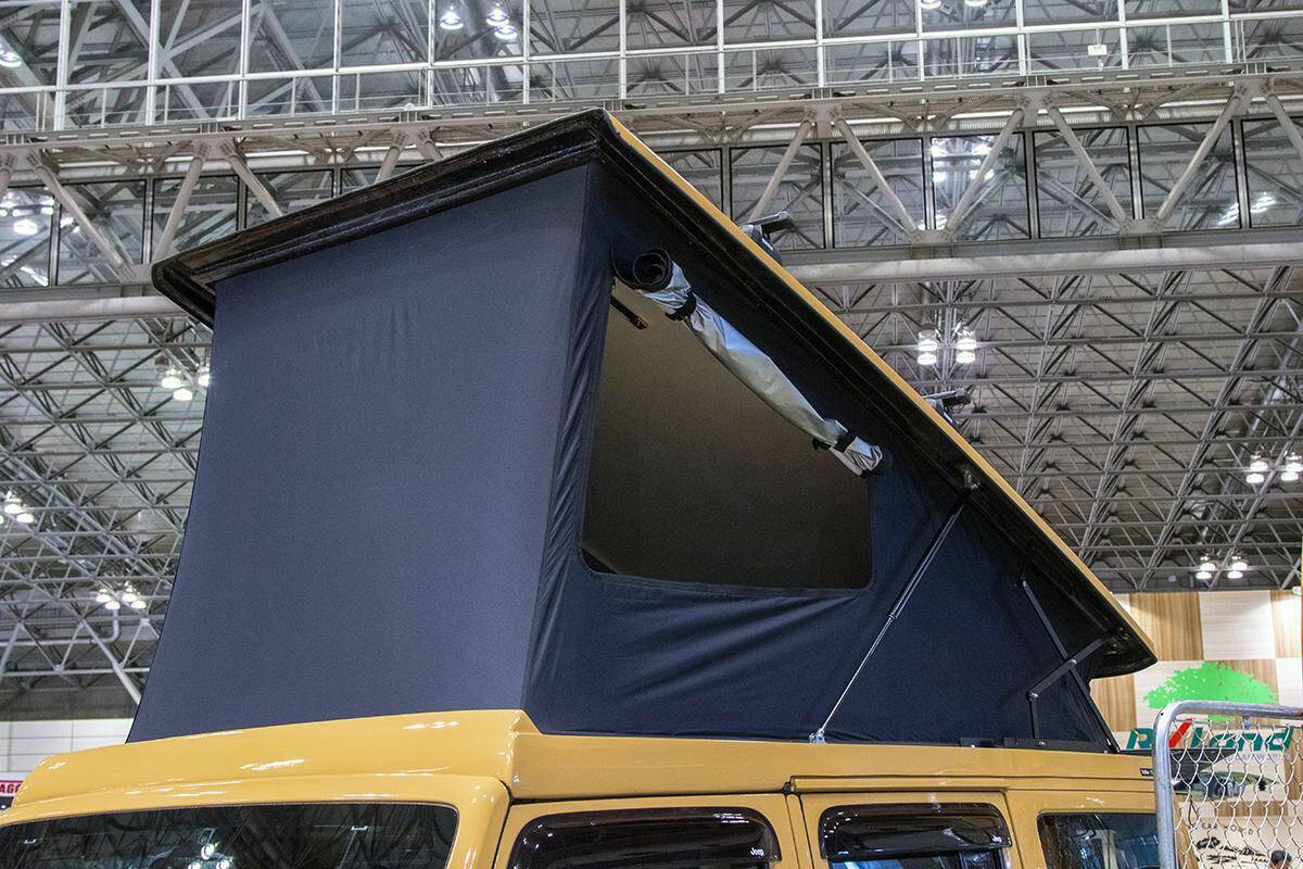 ポップアップルーフ部分はテントのような構造となっており、室内スペースを犠牲にすることなく就寝スペースを確保できるほか、格納時はほとんどベース車と全高が変わらないため、高さ制限に右往左往したり、横風でフラフラしたりすることなくドライブが楽しめるというメリットも存在している。