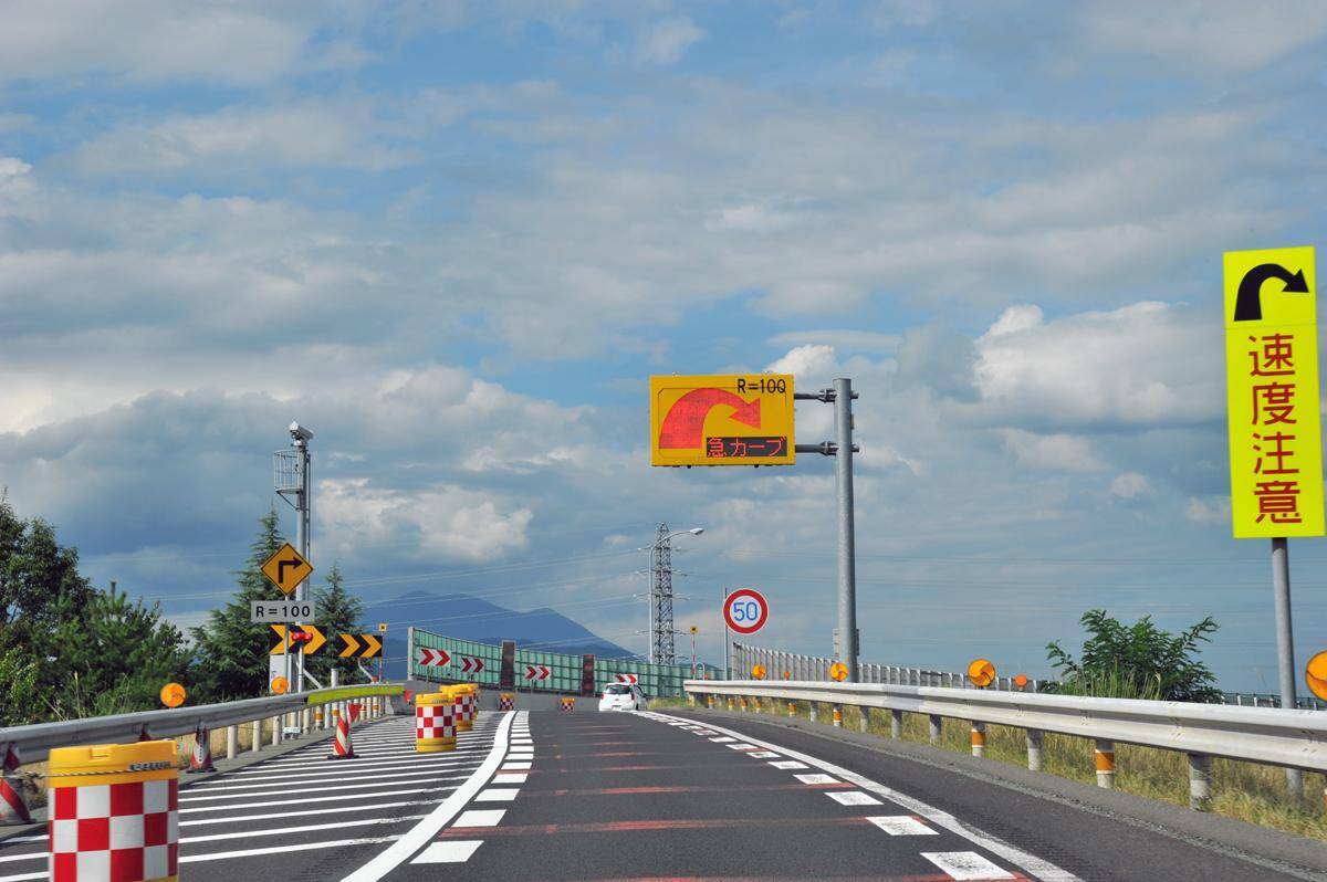 このように、基本的には「R=●●m」の数字が小さくなればなるほど、カーブがきついと思えばいいのだが、同じRのコーナーでも、道幅とカーブ区間の長さ次第でも印象が変わってくるので、この標識からカーブの深さを正確に読み取るのは、なかなか容易ではない……。