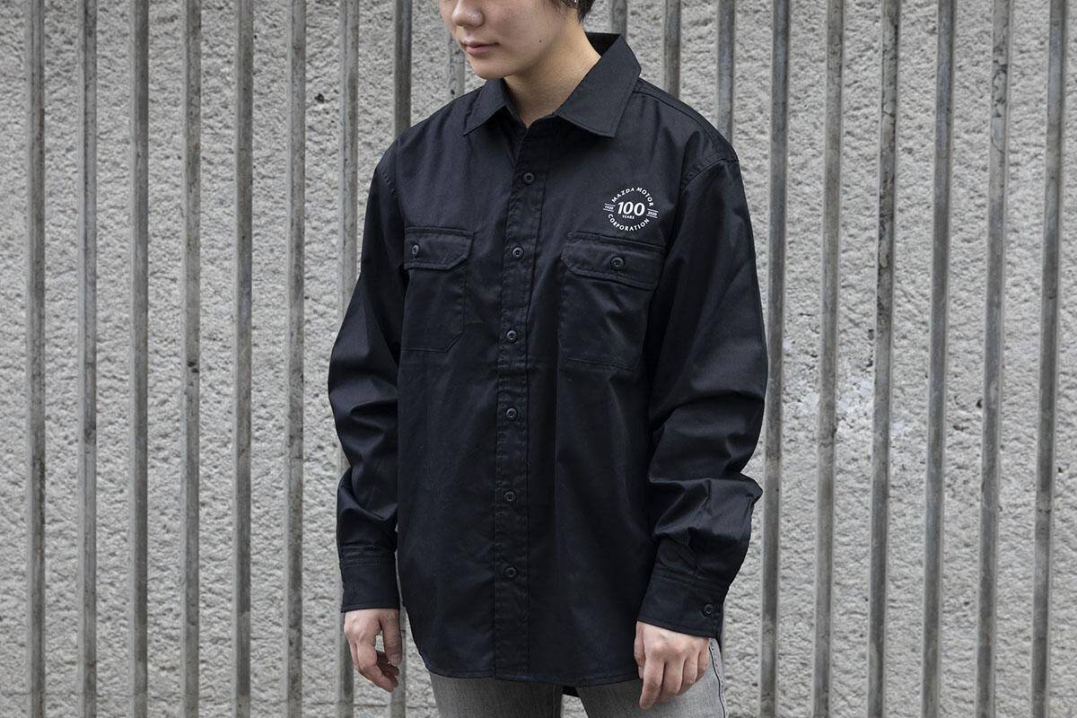 新たに登場したのは、これからの季節に嬉しい秋冬物のアパレルだ。マツダ100th Anniv.ワークシャツは、カジュアルなシーンなどでも着こなせる、上品な長袖のシャツ。左の胸元にはマツダ100周年のロゴを、襟元にはMZRacingのロゴを配置。ブラックのスタイリッシュなシャツによいアクセントとなっている。選択しても型くずれしにくい、形状が安定するイージーケアタイプだ。サイズはS/M/L/XLの4種類で、6600円(税込み)。