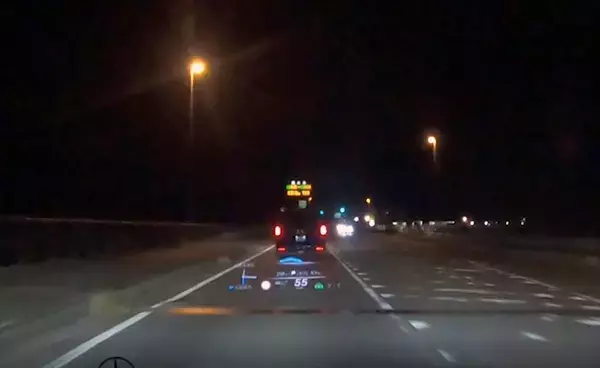 メルセデスベンツによれば、ヘッドアップディスプレイは10m先に仮想表示するように設定されており、ドライバーの視界に自然に入ってくる位置に表示されるという。ナビゲーションとしてのガイドをここで表示し、そこには分岐点での進行方向や走行すべき車線も案内されている。さらに走行中の速度や制限速度、ADAS系の表示も行われていた。その表示はしっかり整理されたもので、焦点をとくに合わせることなくスムースに捉えることができるのはこのヘッドアップディスプレイの良いところと言えよう。