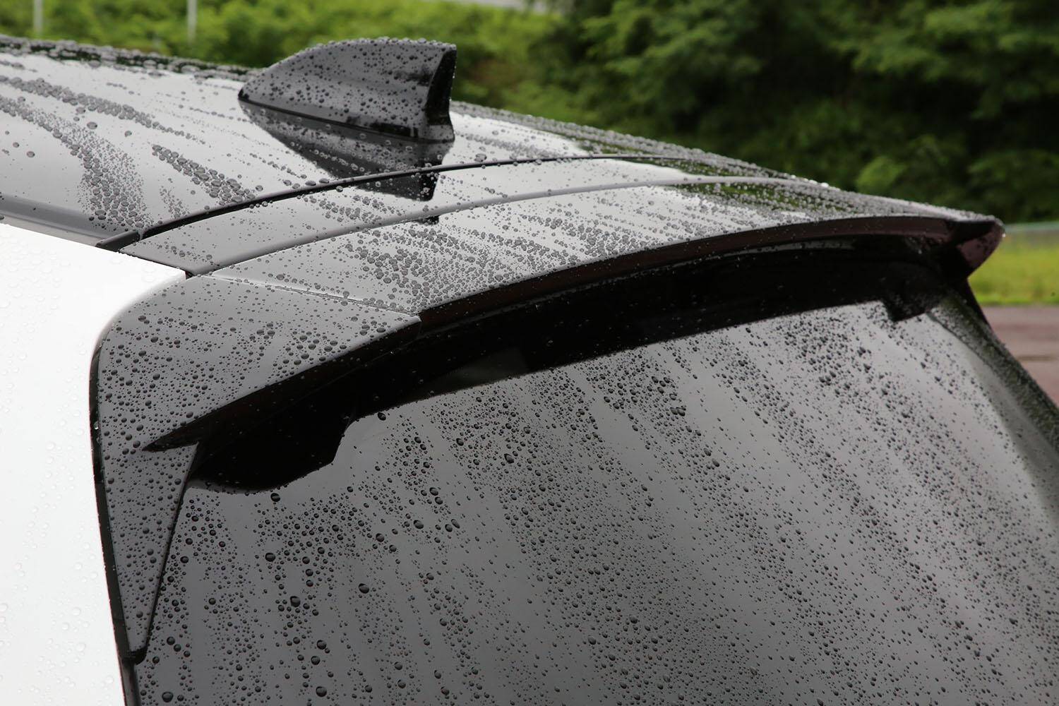 一方でリヤ側も専用テールゲートスポイラーとバンパーが備わる。スポイラーは長さや角度を変更。リヤバンパーはコーナーにエッジを効かせて乱流を断ち切るような形状となっているほか、センター下部はディフューザー形状となり車体下部に流れる空気の流速を高めることで安定性を得ようとしているところがポイントだ。基準車は前ばかりが下がり、リヤが低速域から浮き上がって行く傾向だが、モデューロXでは前後のリフト量は高速域までほぼ等しくなったという。