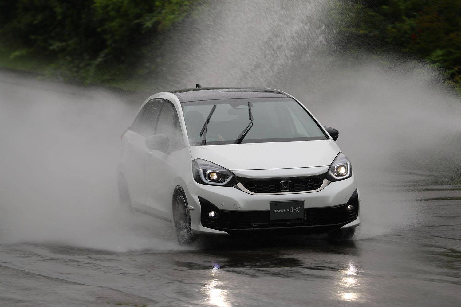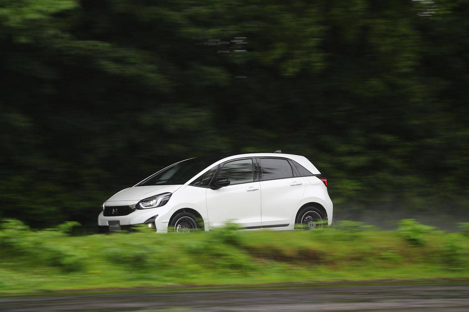 言い方は悪いが「これがフィット?」と呟いたくらいだ。ただ、路面が荒れた状況だとリヤ側がワンダリングを受けてヨロっとするシーンが若干見えた。ベースモデルでもその傾向はあったが、モデューロXはほかが良すぎる分、少しそこがクローズアップして見えてしまった。おそらくトーションビーム付け根などのブッシュなどが動いているのだろうが、ベースが持つクセが際立ってしまったのはもったいないようにも感じる。