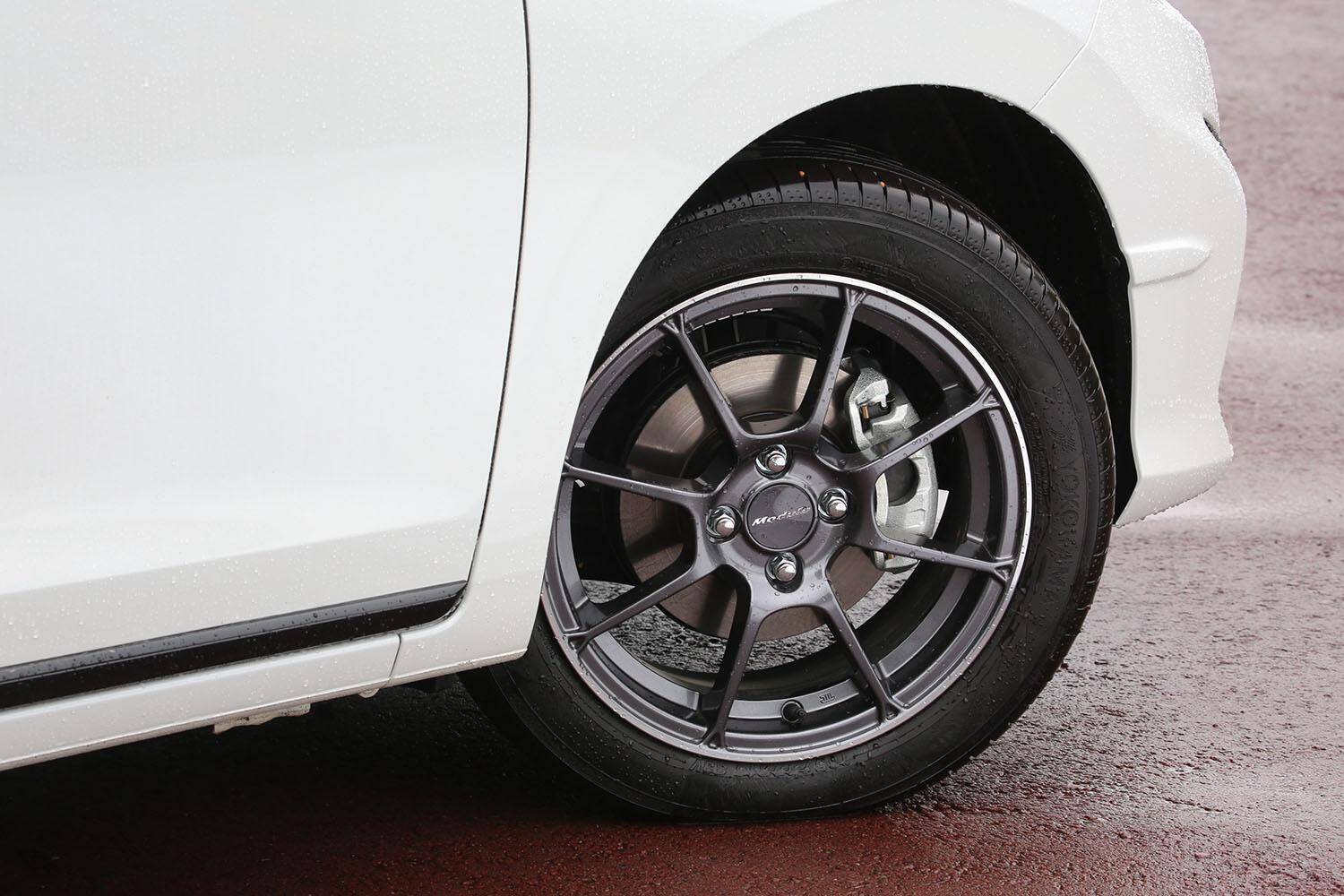 このホイールは剛性バランスにも気を配り、ホイールのしなりをコントロールすることで、タイヤの接地面圧を高めているという触れ込みも気になるところだ。