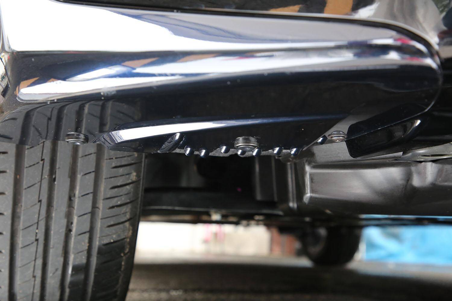 実車を見てみると、前後バンパーが基準モデルとは明らかに違う形状をしているバンパースポイラーであることが理解できる。車体下部を覗けばエアロスロープやエアロボトムフィンといった拘りの形状が施されている。エアロスロープは跳び箱のようなスロープ形状のものが中央部に備えられており、その中央にはフィンが与えられている。これにより車体中央部に速い空気の流れを生み、直進安定性に寄与するというもの。
