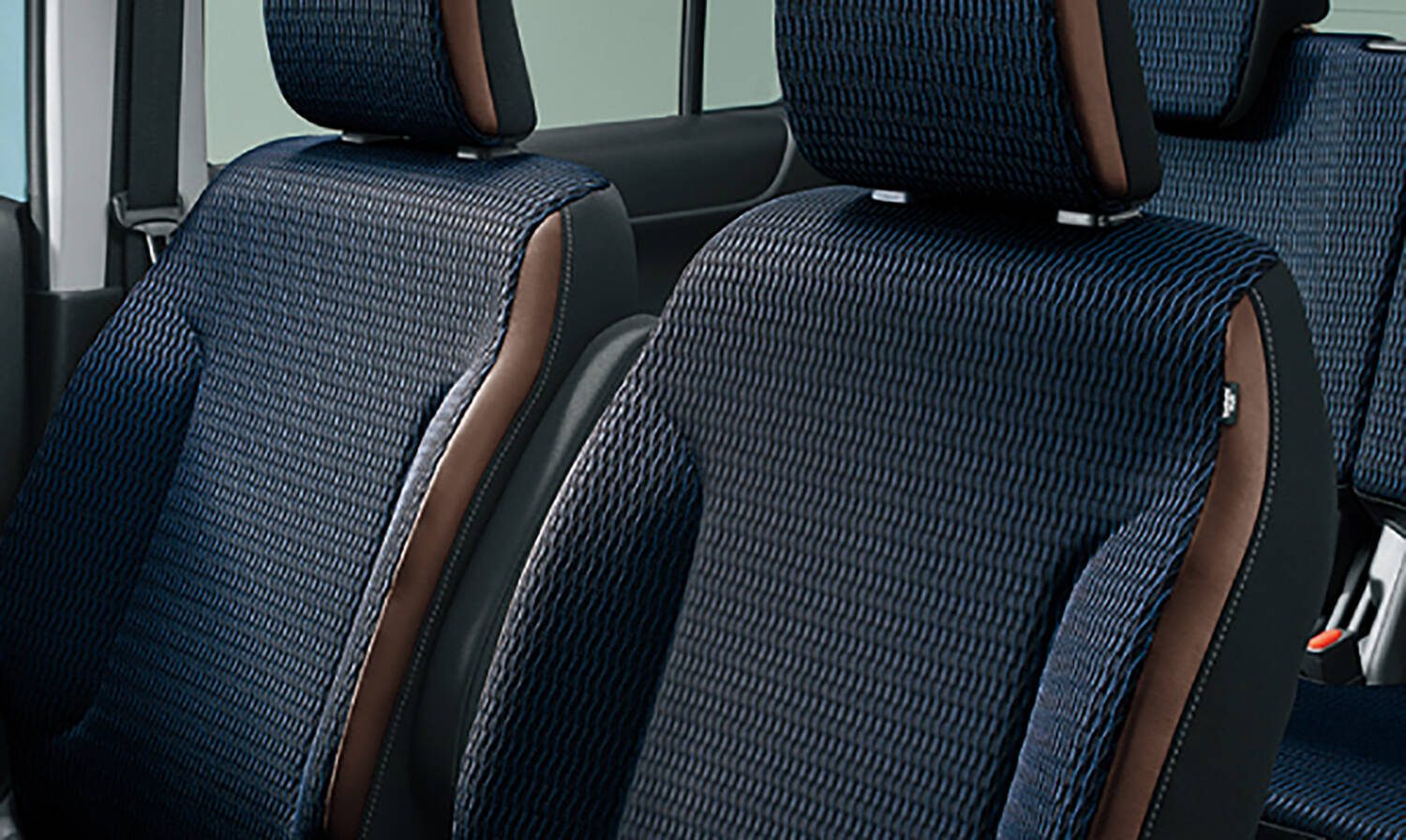 内装は、シートにブラウンとダークブルー色のレザー調&ファブリック表皮を採用するとともに、インパネカラーガーニッシュをチタニウムグレーにするなど、上質さを兼ね備えた空間となっている。