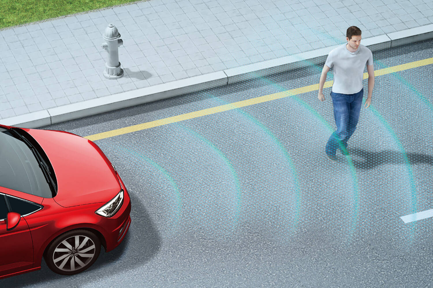 衝突被害軽減ブレーキは、「フロントアシスト」と呼ばれる歩行者検知対応シティエマージェンシーブレーキ機能付き。レーダーにより全車速域で前方の車両との距離を検知します。