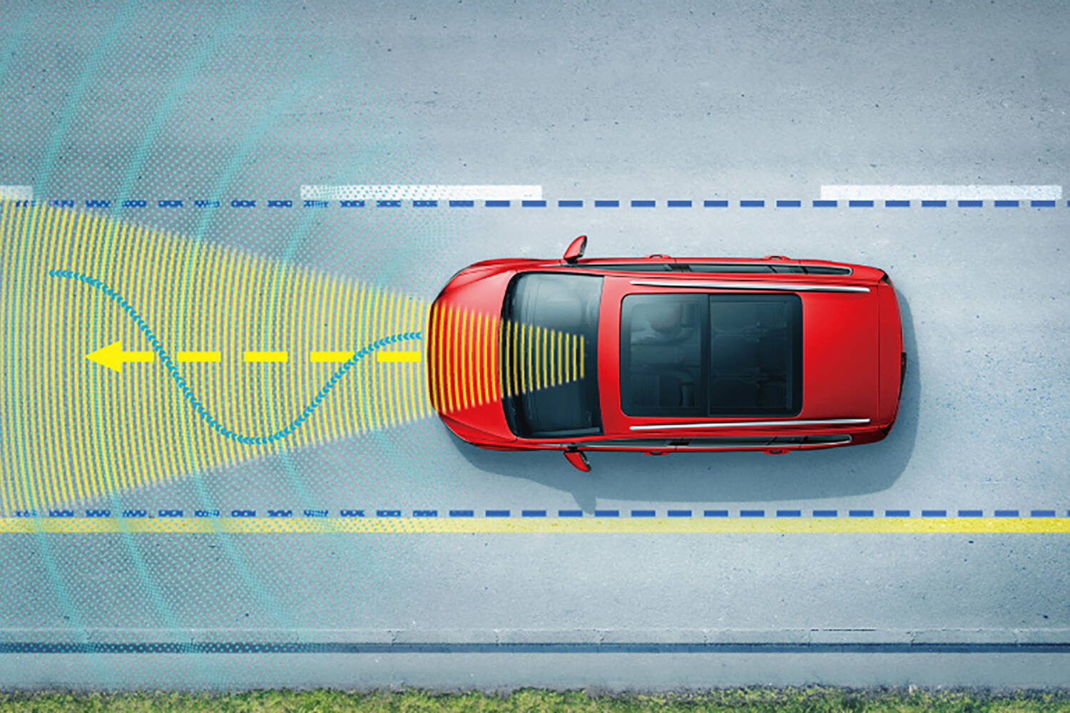 また、運転中、車線を逸脱しないようステアリングの補正を行うレーンアシストシステムも装備。フロントガラス上部に装着されたカメラが走行中の車線をモニタリングし、ドライバーが意図しない車線の逸脱を検知するシステムです。