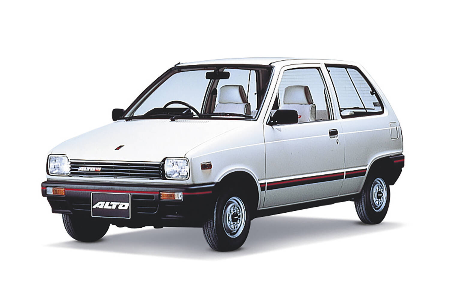 軽乗用車のフロンテをベースに荷室スペースを拡大するなど物品税が非課税だった軽ボンネットバンに仕立てた初代アルト。合わせて徹底したコストダウンを行い、当時の軽自動車価格の平均を大きく下回る47万円で発売したことが話題と衝撃を与えました。