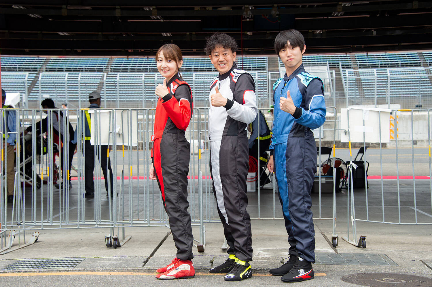 このような豪華メンバー&バックアップ体制によって、参戦する「クラブレーシング」は支えられているとのこと。「カートに乗ってこい」というお気楽な指令からは考えられないほど、気付けばスケールの大きな話となっていたというわけだ。ちなみに、レーシングスーツは石田の発案により、せっかくなので編集部員3名で同じモデルの色違いで揃えた。