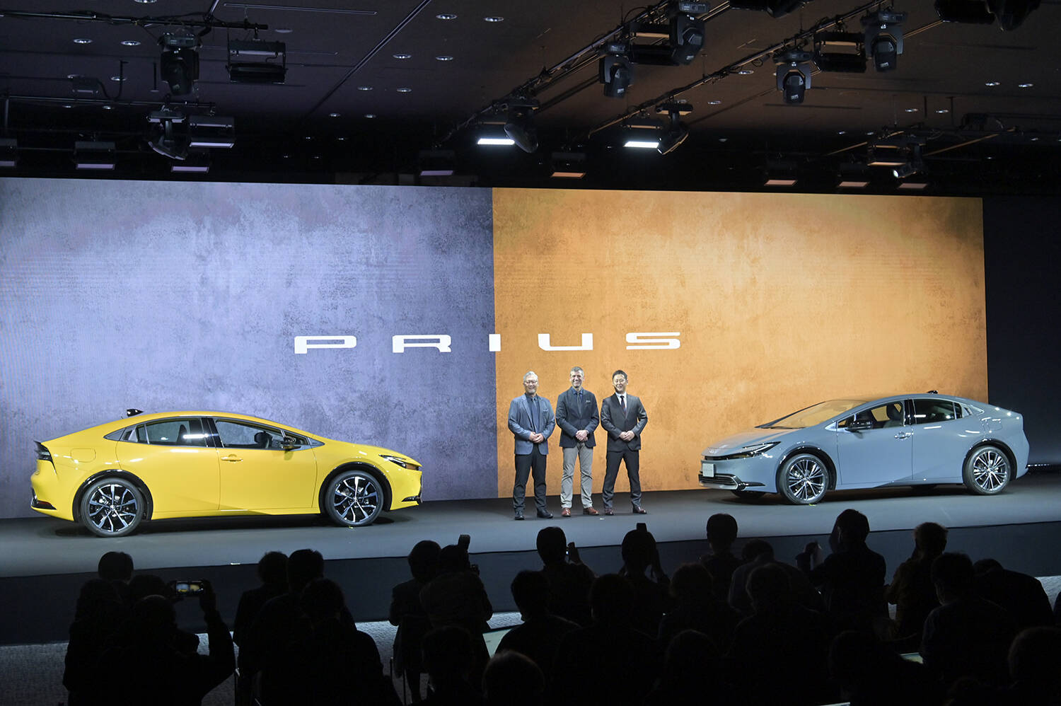 発表会場のステージに登場した5代目プリウスは、たしかにプリウスらしい空力性能の良さを感じさせるフォルムだった。