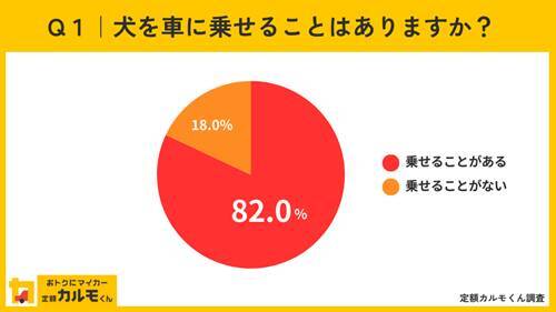 自家用車を所有し犬を飼っている人に、犬を車に乗せることがあるかどうか聞いたところ、「乗せることがある」が82.0%、「乗せることがない」が18.0%という結果となりました。車を持つ愛犬家の8割以上が、犬と一緒に車に乗っていることがわかりました。