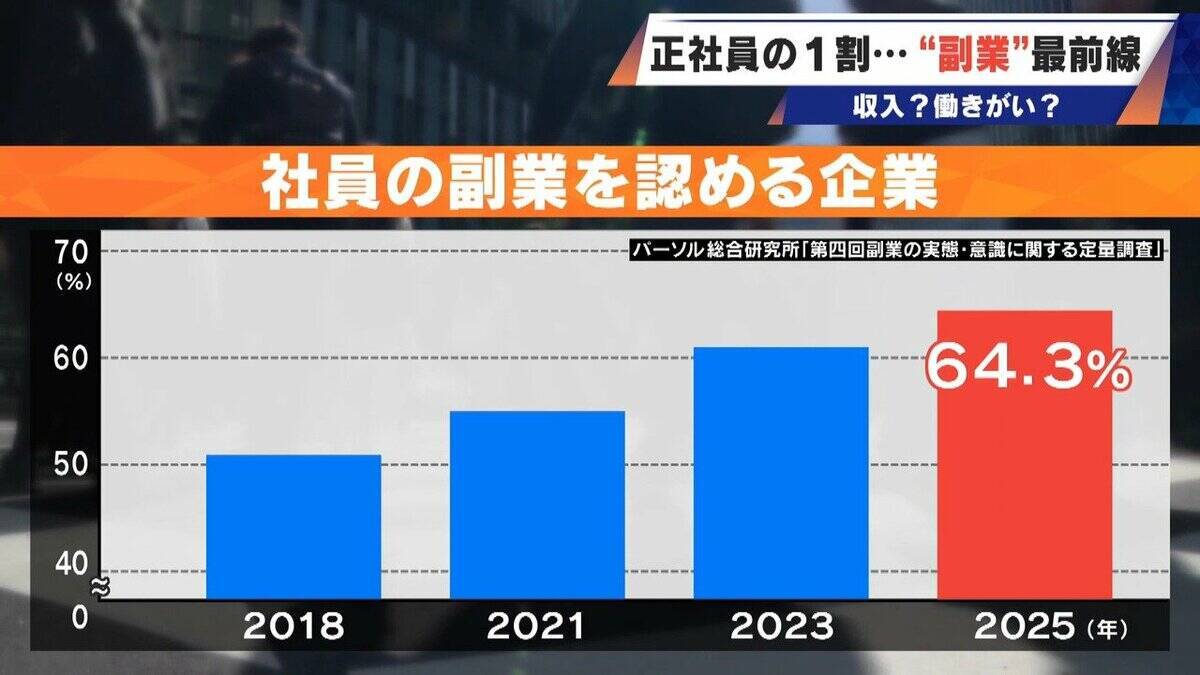 副業を認める企業は増え続けています。パーソル総合研究所によりますと、社員の副業を認める企業の割合は、6割を超えています。また、正社員の副業実施率は調査開始以来、最高の11%に。“副業で好きなことをやりたい”“趣味を仕事にしたい”