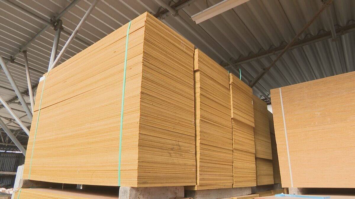 18日に訪ねた建設会社は、鉄筋コンクリートの建物を作る際に必要となる、コンクリートを流し込む「型枠」を作っています。その材料がべニヤ板です。