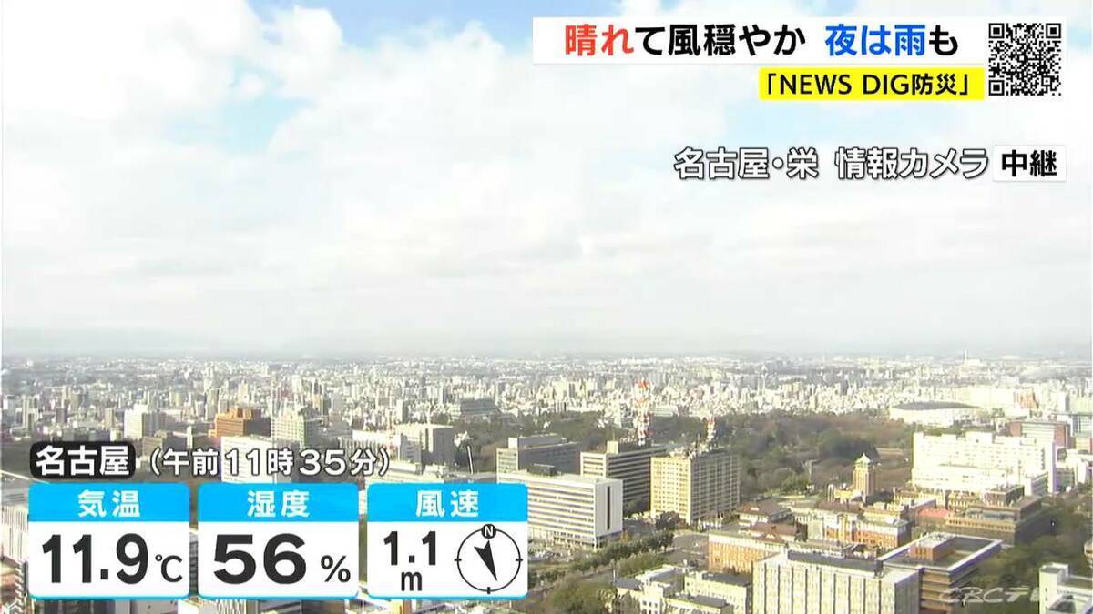 最高気温は名古屋や岐阜で15℃、高山や津では11℃の予想です。愛知県や岐阜県では11月下旬並みの気温になる所が多いでしょう。