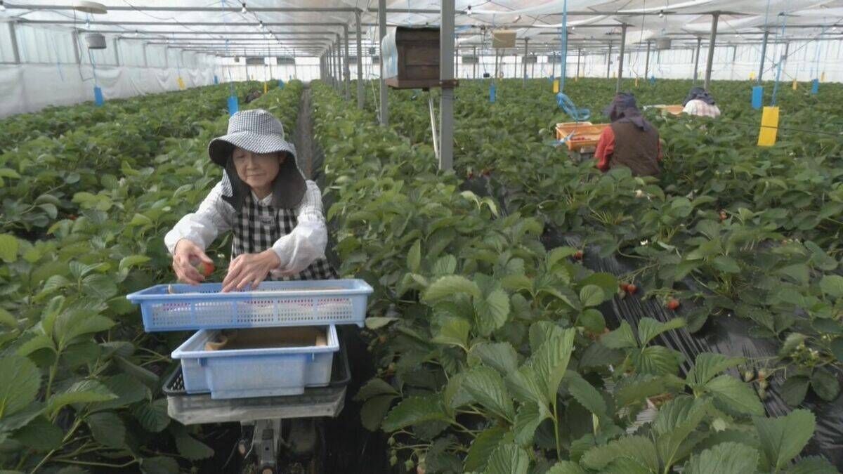 出荷量は、去年よりも多い60トン余りを見込んでいて、収穫されたイチゴは県内の大手スーパーなどで販売されます。
