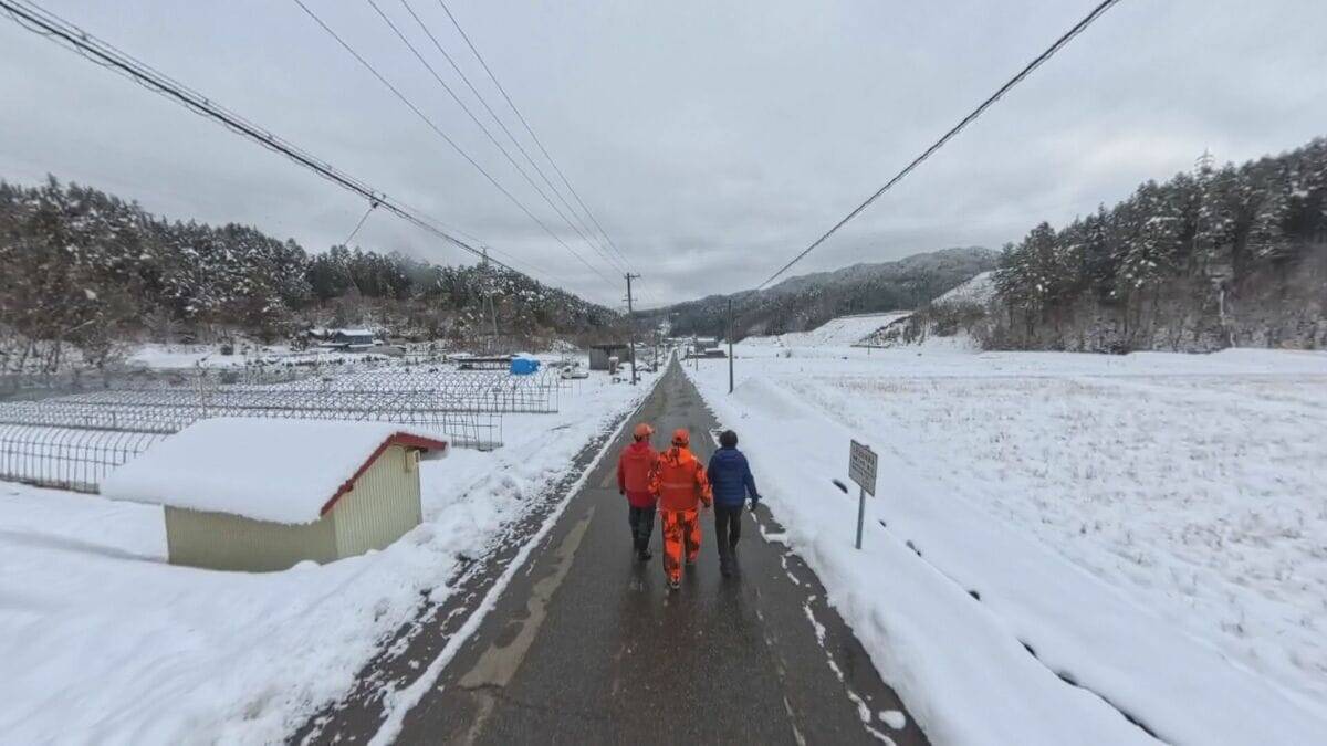 2人と共に真っ白な山に向かった。麓の積雪は20センチ程度だったが、山はその2倍近い積雪となっていて、太陽に照らされキラキラ輝いていた。父はライフルを、息子は散弾銃を背負って、標高1000メートル以上の山に入ると、ニホンカモシカが木々の間から顔を出していた。小動物の足跡もいくつかあったが、クマの足跡は見当たらなかった。