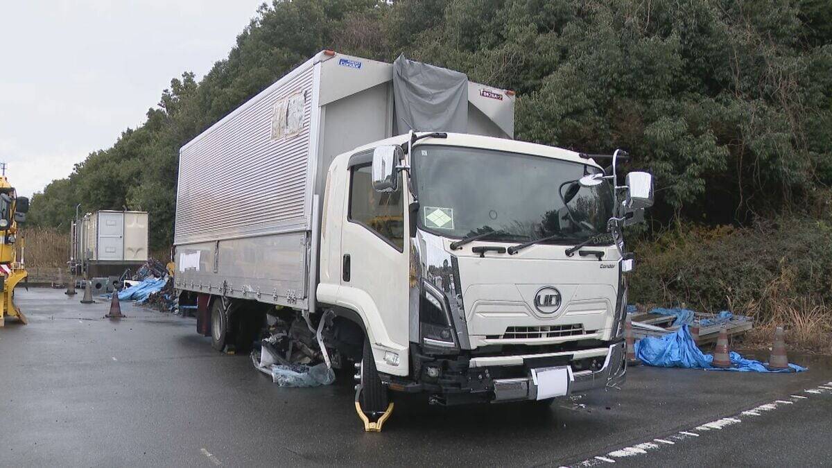【画像を見る】男が乗っていたトラック">現行犯逮捕されたのは、神奈川県綾瀬市の会社員・山口昭浩容疑者(65)で、警察によりますと山口容疑者はきのう午後11時20分ごろ、トラックを酒気帯び運転し新城市の新東名高速・下り線の雁峰第二トンネル内で壁にぶつかったはずみで、斜め前を走っていた乗用車に衝突し、自身のトラックを横転させるなどした疑いがもたれています。