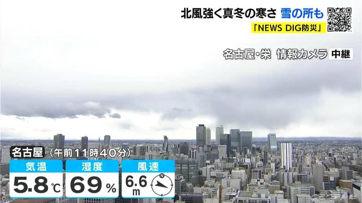正午前の名古屋市内の様子は、暑い雲が広がっています。この時間の気温は5.8℃。