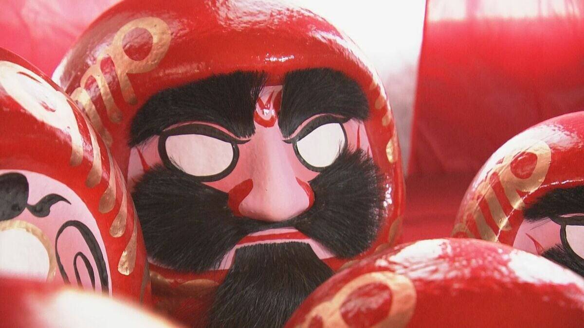 願いを込めただるまは、金運や厄除けを司る七福神の毘沙門天(びしゃもんてん)の前に並べられ、参拝客は熱心に手を合わせました。