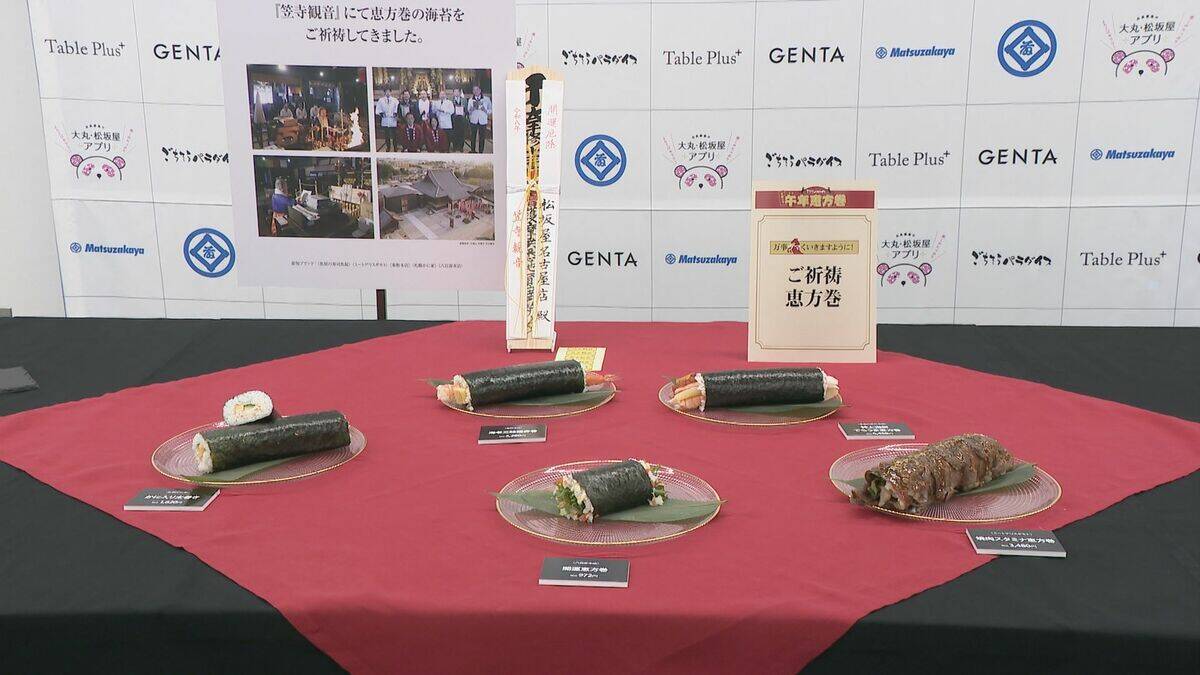 はみ出るほど具材が入った海鮮巻きに、特大のエビを3尾使った巻き寿司…。松坂屋名古屋店が今年販売する「恵方巻き」をお披露目しました。