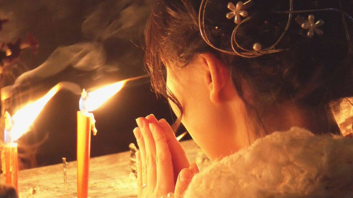 市内を流れる瀬戸川沿い では灯籠流しも行われ訪れた人たちはろうそくに火を灯し、手を合わせていました。